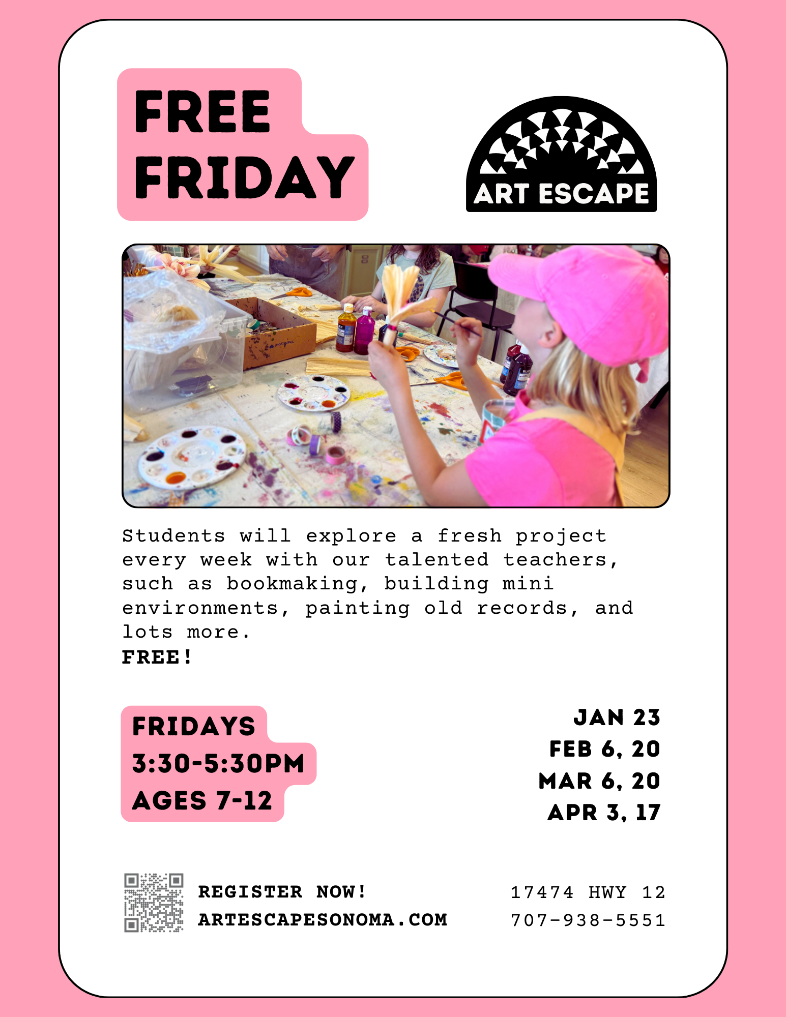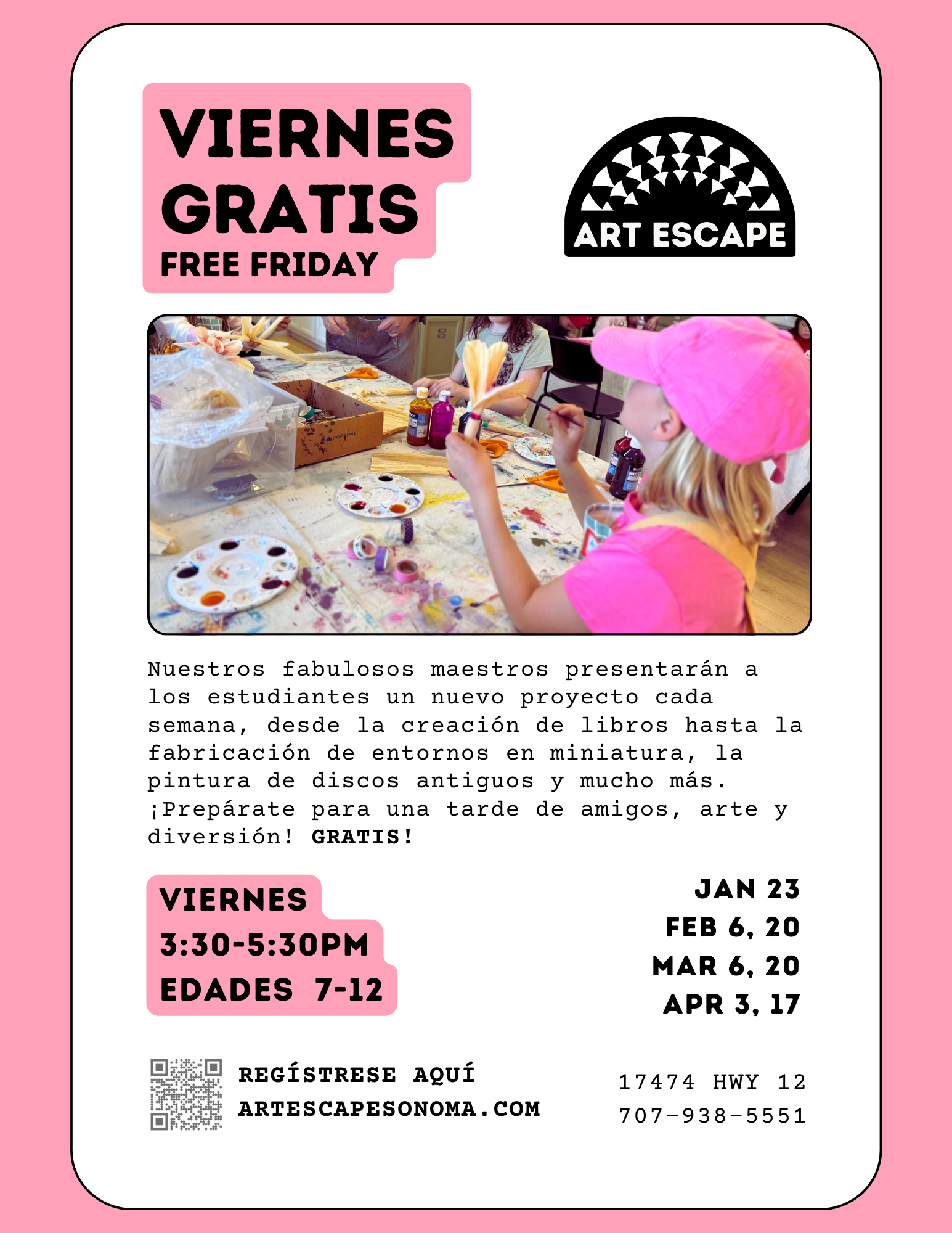 *Para poder incluir a todos niños en nuestros programas, le pedimos que se limite a UNA classa de Free Friday por mes. Gracias por entender! *