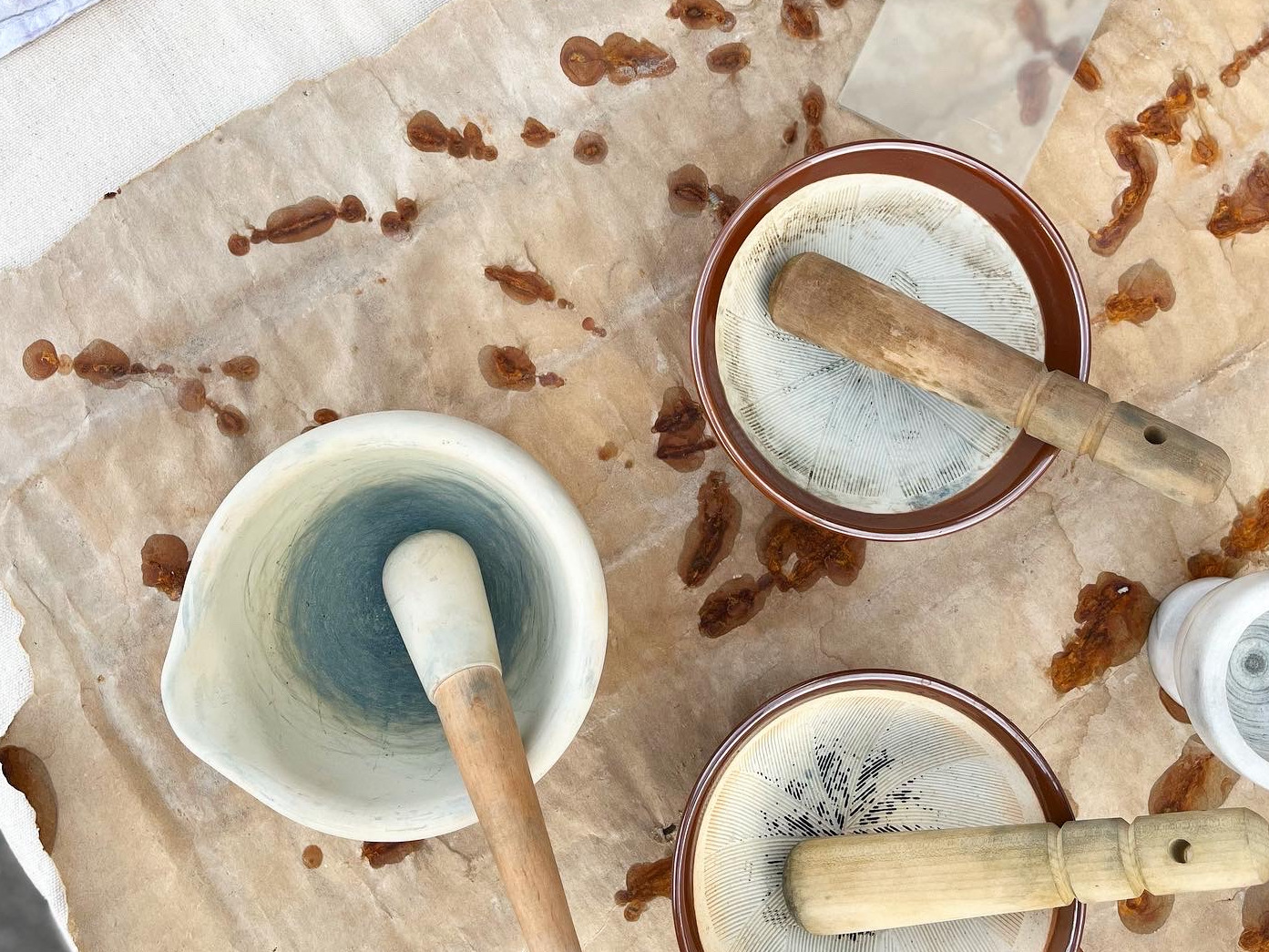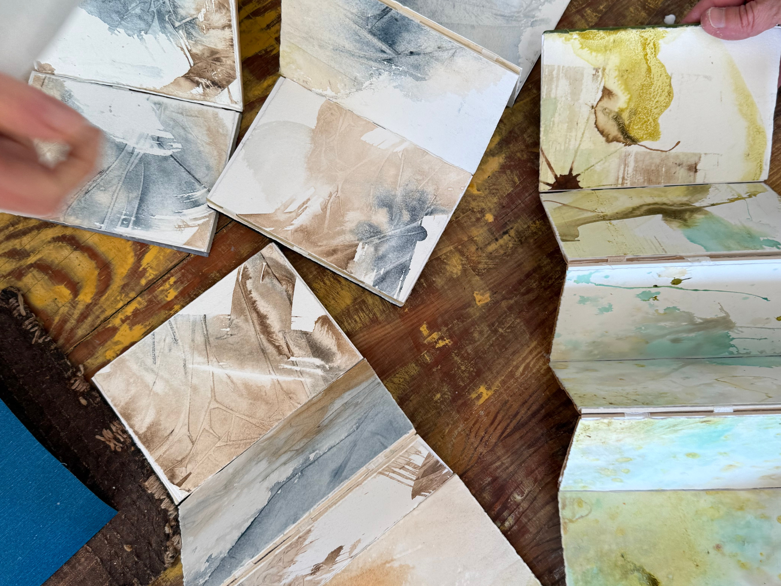 We’ll begin by painting botanical inks on fine papers—using organic pigments and creative mark-making techniques—then transform those pages into folded book forms tucked into beautiful handmade covers.