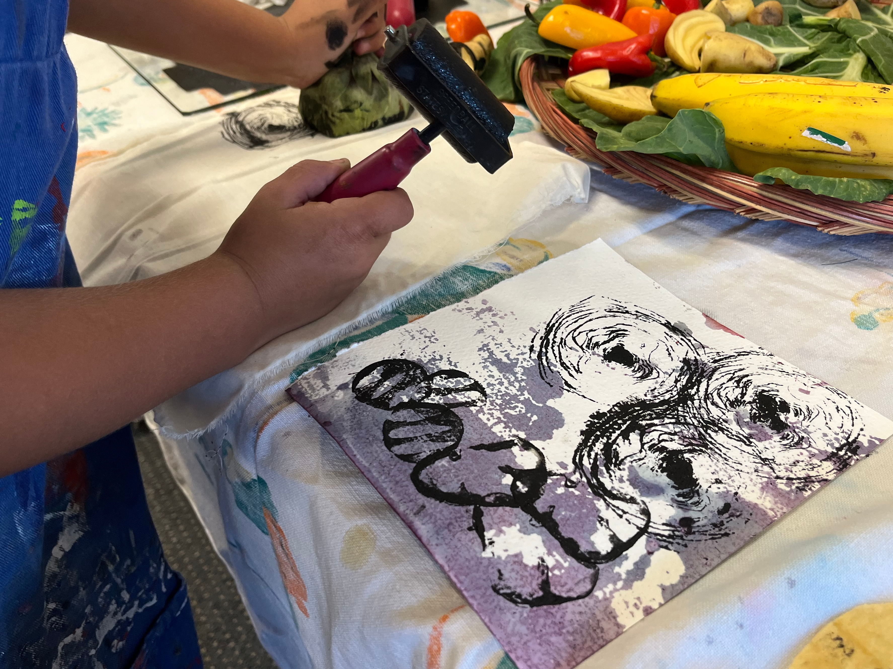 Usarán sellos tallados a mano, rodillos y plantillas para crear diseños coloridos y originales, que luego imprimirán sobre manteles o servilletas de algodón para llevar a casa.