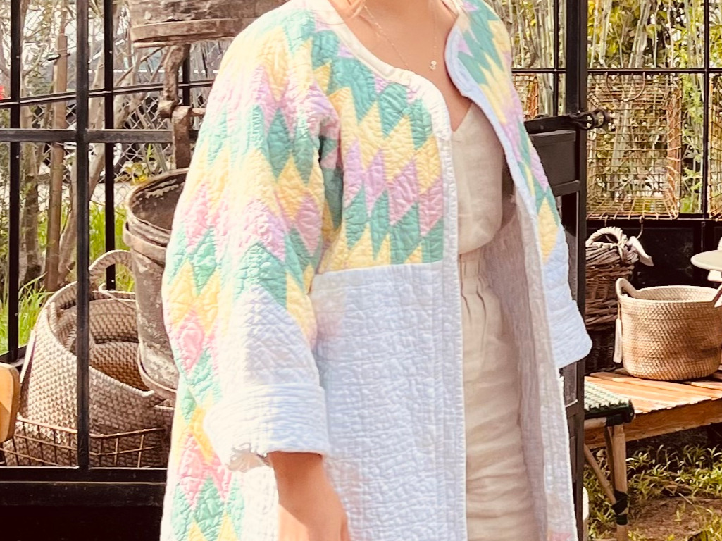 Eva te enseñará técnicas sencillas para cortar, ensamblar y finalizar tu propio abrigo de quilt, combinando puntadas a mano y máquina de coser.