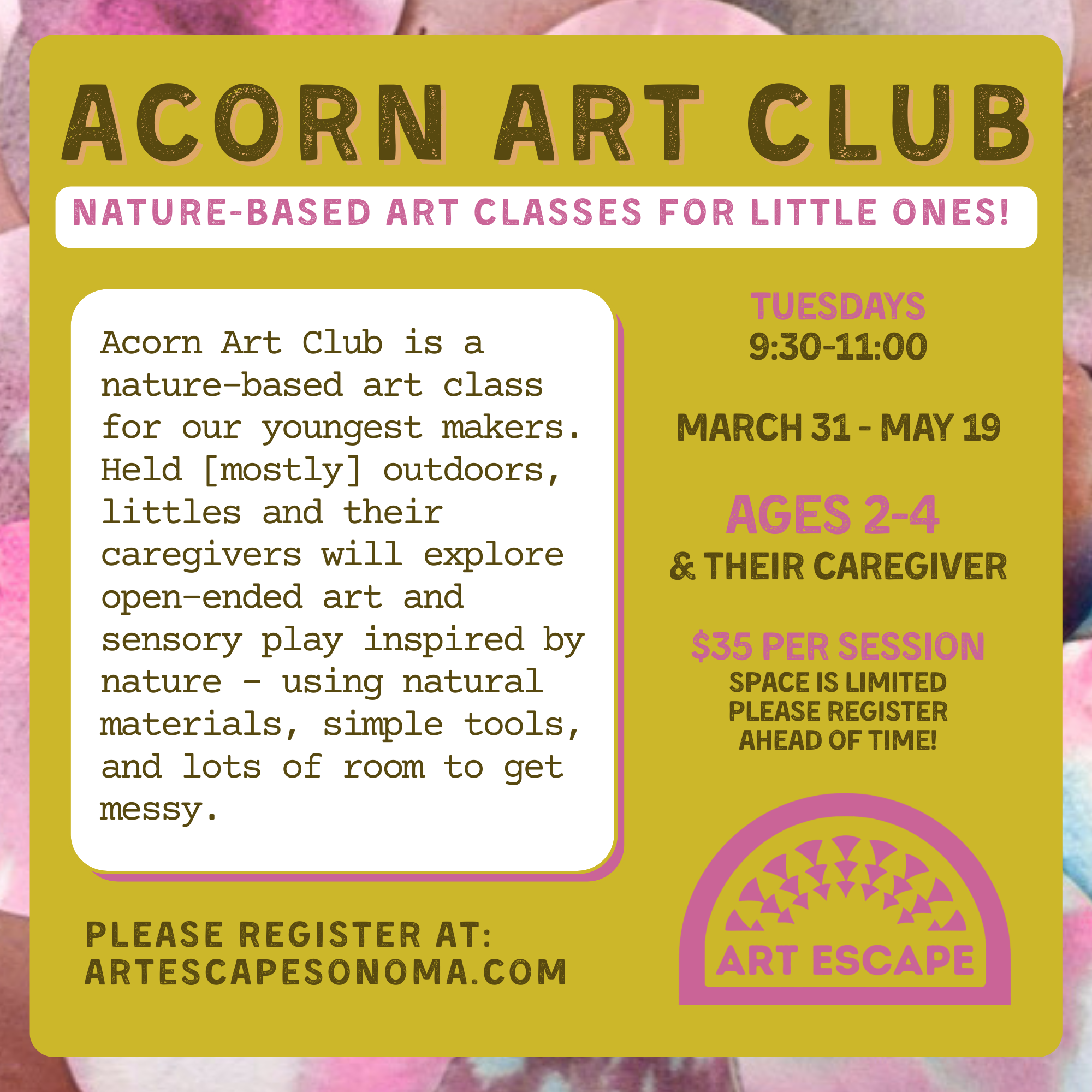 Click on "Register" to read class information and to register online. If a camp is FULL, you may continue to register online to be placed on the WAITING LIST.